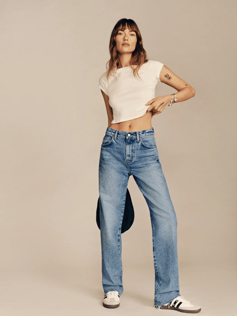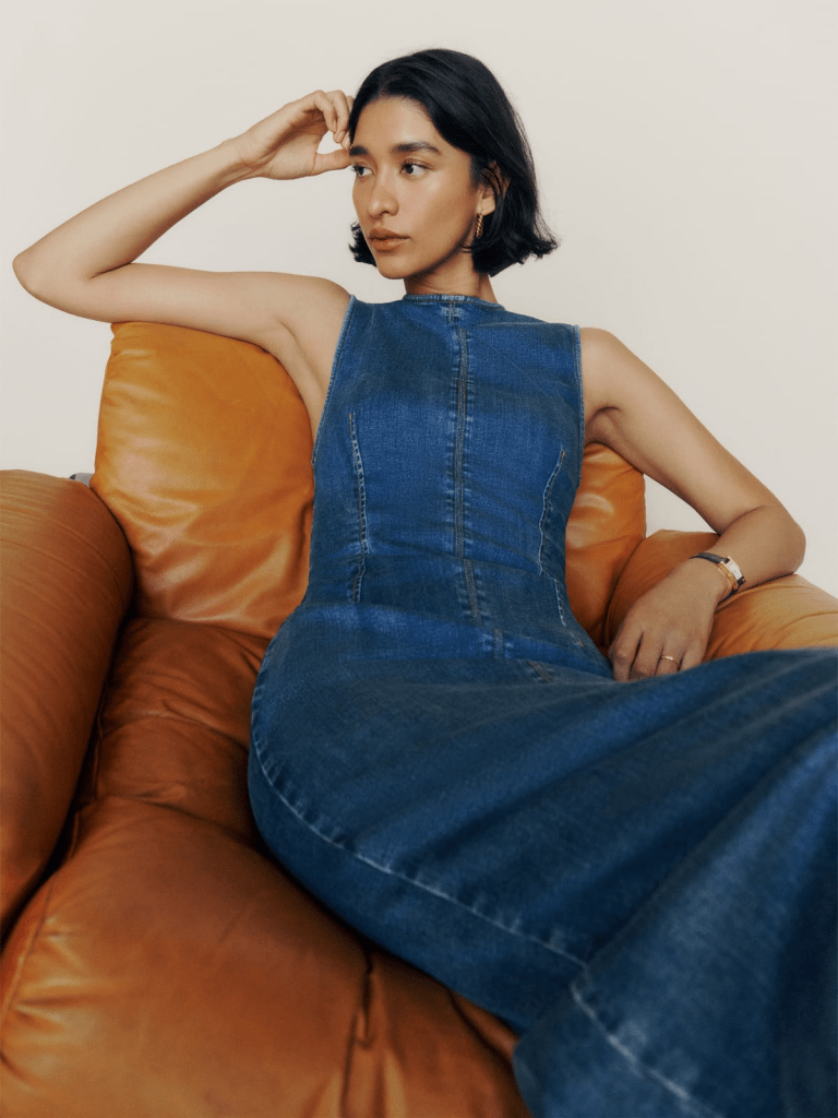 Reformation evalúa la huella ambiental de cada prenda y utiliza fibras recicladas, ofreciendo moda femenina casual y responsable.